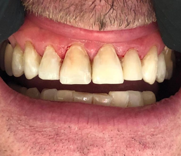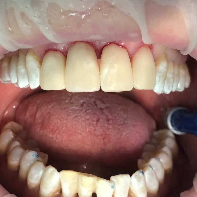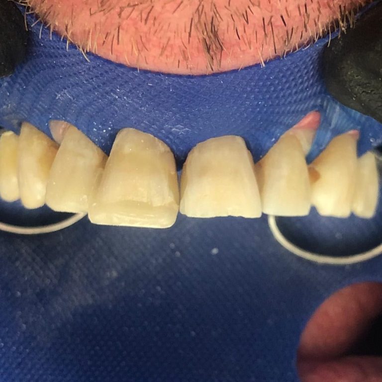 die restlichen Zähne wirken durch die Austrocknung während der Behandlung noch extrem hell